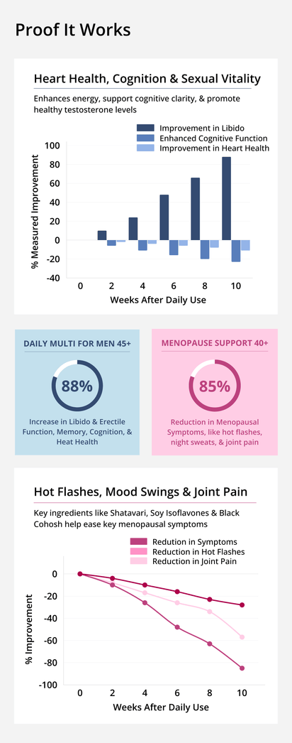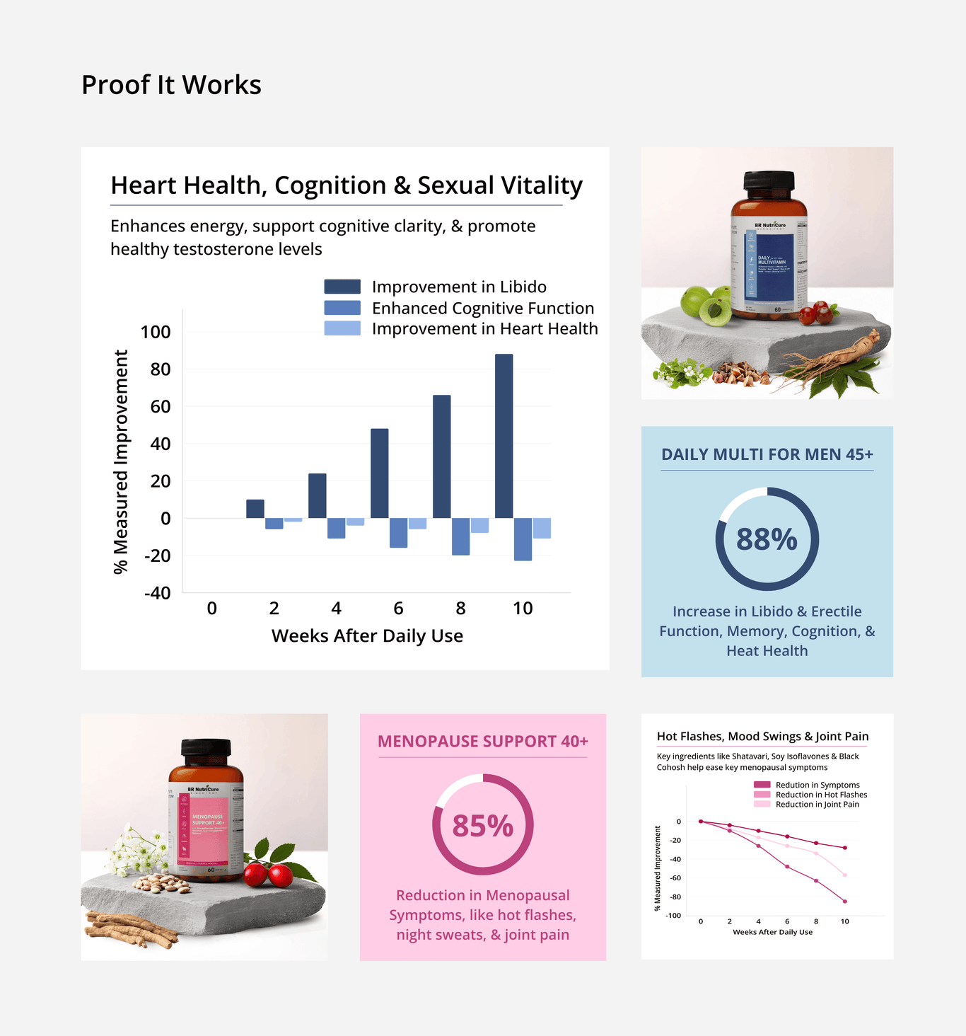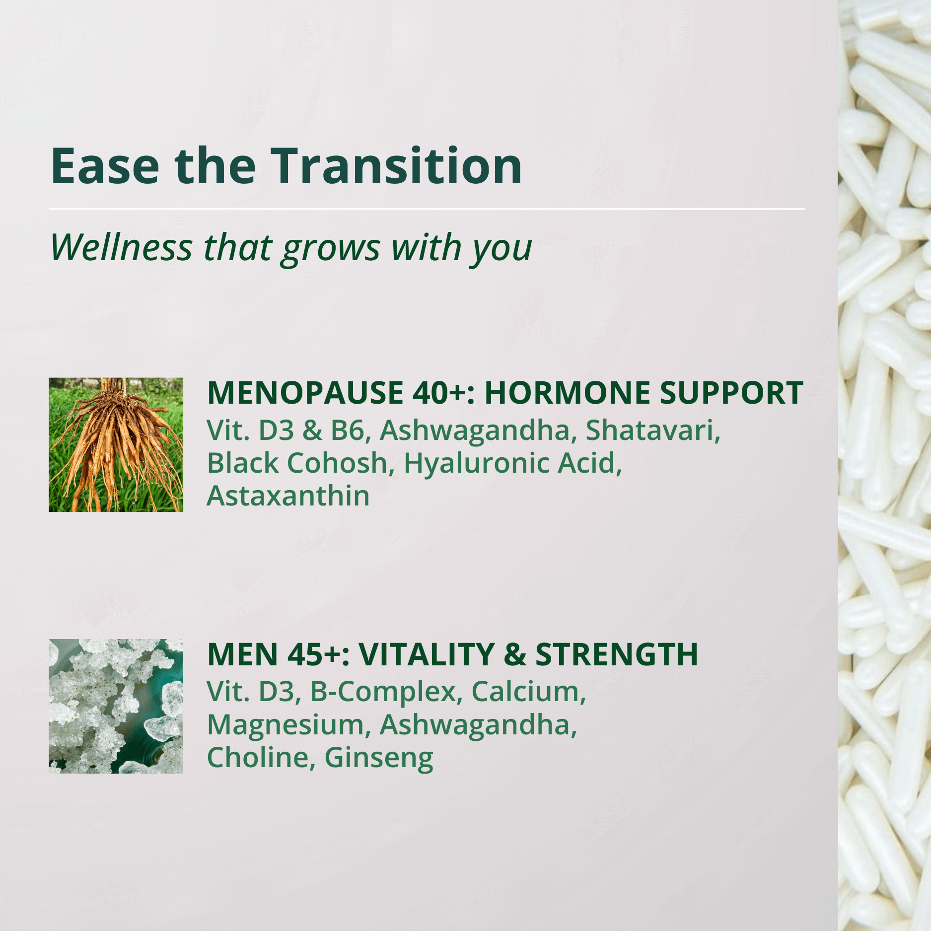 These formulations are age-specific, doctor-designed, and made with clinically validated nutrients to meet the changing needs of men and women over 40.
