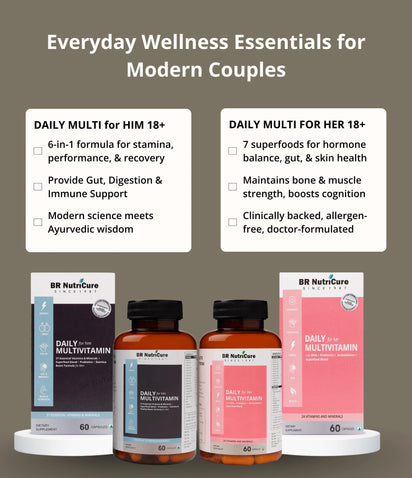 This bundle is designed for couples who want to invest in their long-term health together, By taking these multivitamins daily, both partners support their energy, stamina, immunity, focus, heart health, and overall vitality. It helps reduce fatigue, improve stamina, and maintain hormonal and metabolic balance, and keeps the both of you at your best every day.