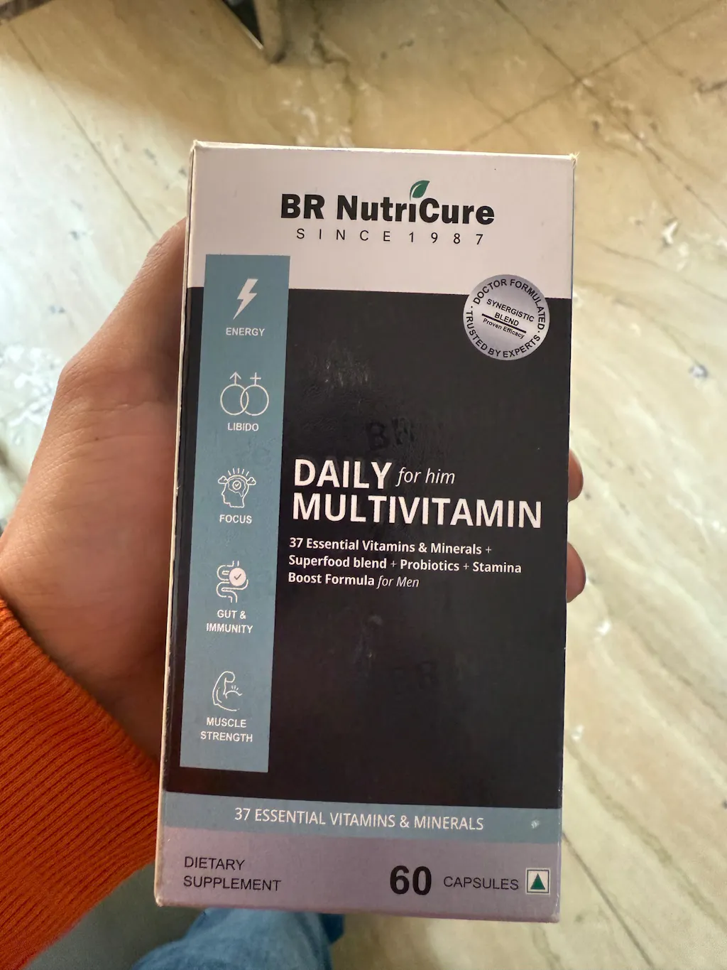 BR Nutricure Daily Multi For Him (18+) is doctor-formulated with 37 essential nutrients, potent superfoods, and probiotics, carefully tailored to support men’s energy, stamina, libido, gut and overall performance. Unlike generic multis, it goes beyond the basics with clinically backed ingredients and a clean, vegetarian formula that puts quality and real results first.