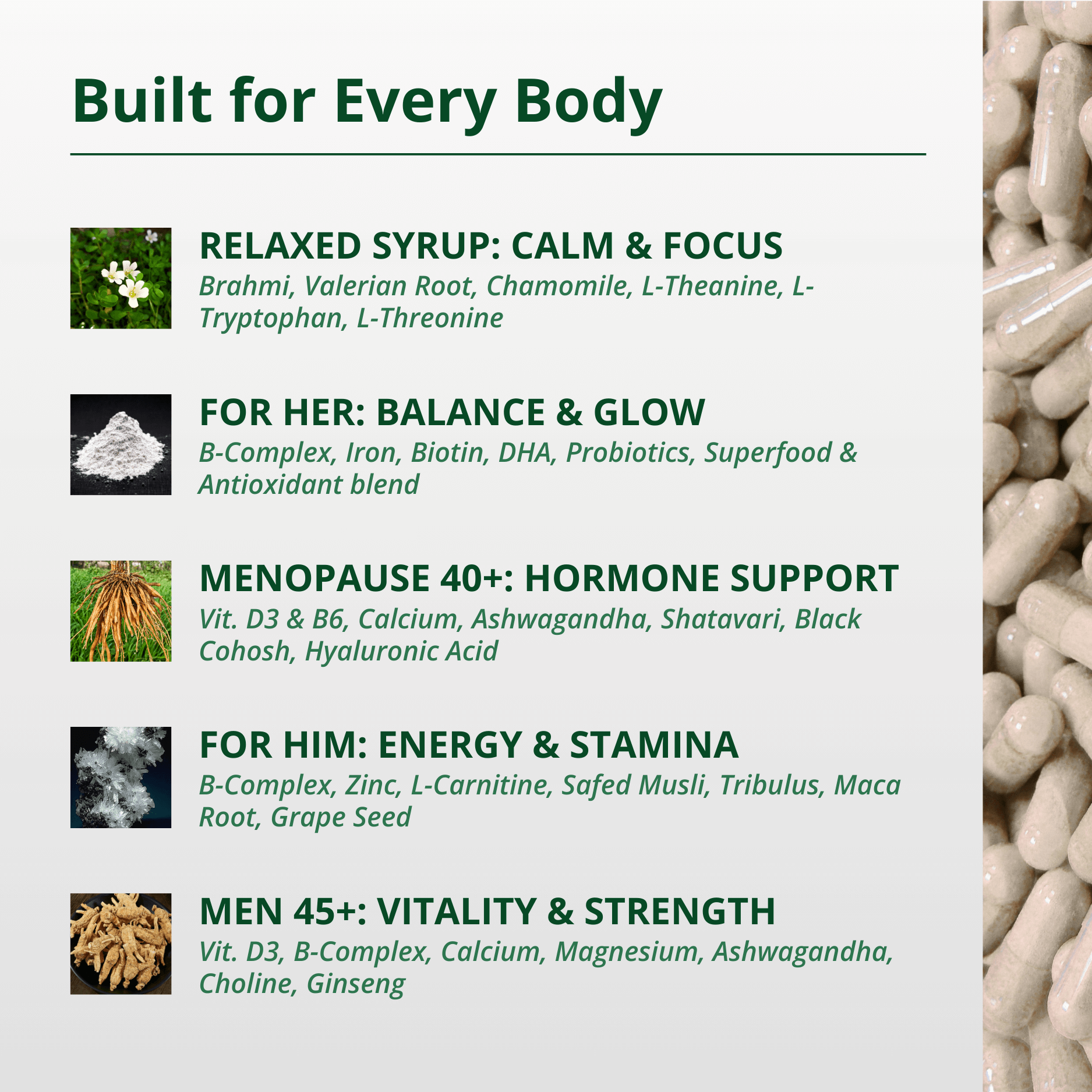Each product is doctor-formulated with clinically validated nutrients, designed for age- and gender-specific needs, and crafted to support daily vitality, long-term health, and emotional wellbeing.