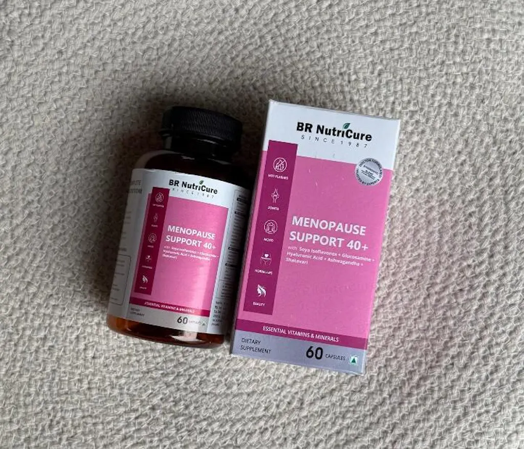 BR NutriCure Menopause Support 40+ targets up to 20 menopause and perimenopause symptoms like hot flashes, mood swings, joint pain, fatigue, and sleepless nights. Powered by 21 clinically proven ingredients, it boosts energy and focus, supports emotional balance, and promotes healthy ageing, so you feel strong, steady, and supported through every stage of this transition.