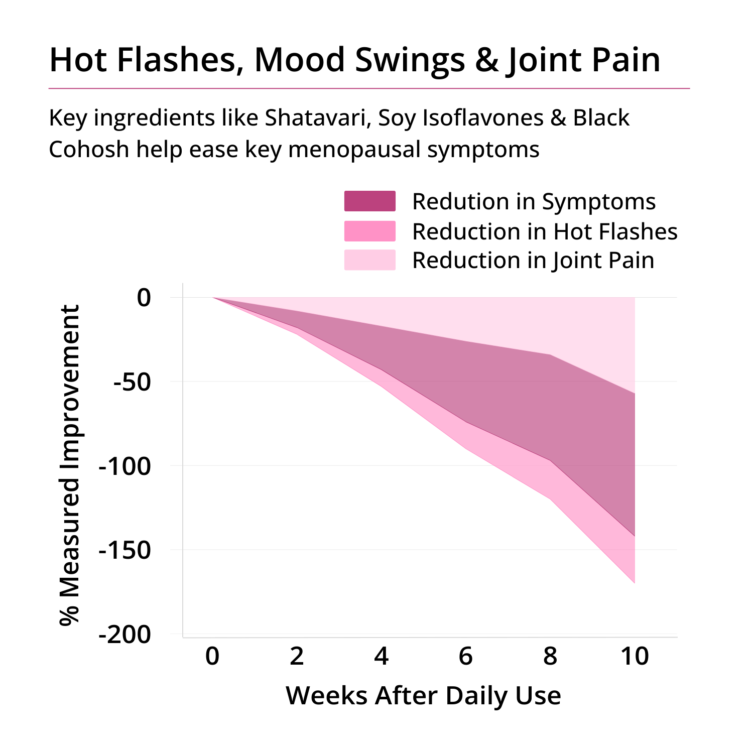 Meet our doctor backed support for women 40+, designed to ease the transition through menopause. Powered by targeted ingredients, it helps manage hot flashes, joint discomfort & mood swings.