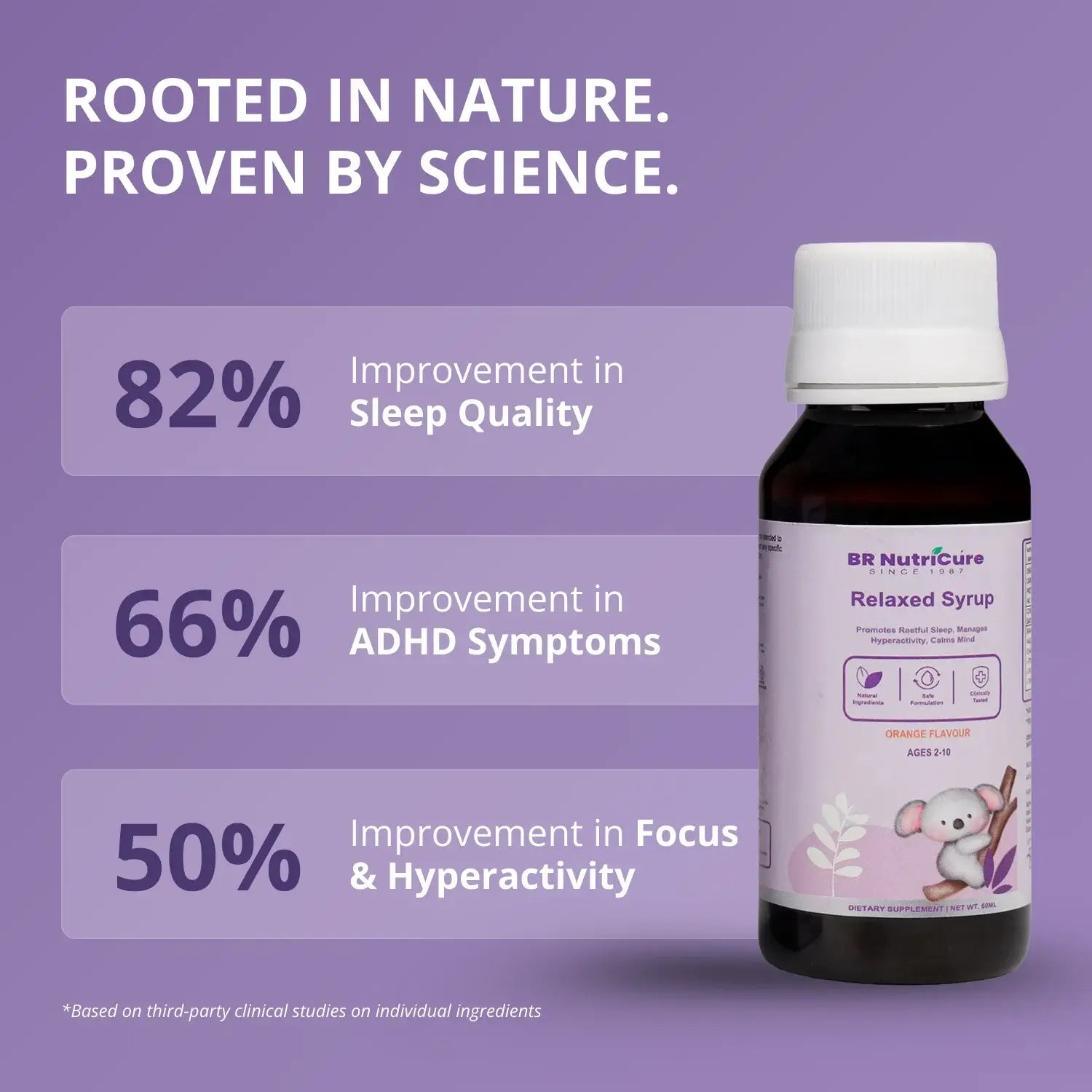 Relaxed Syrup For Kids is an evidence-based formulation with calming Chamomile, soothing Valerian Root, and brain-nourishing Brahmi shows over 50% reduction in hyperactivity, impulsiveness, and improved attention regulation in children.