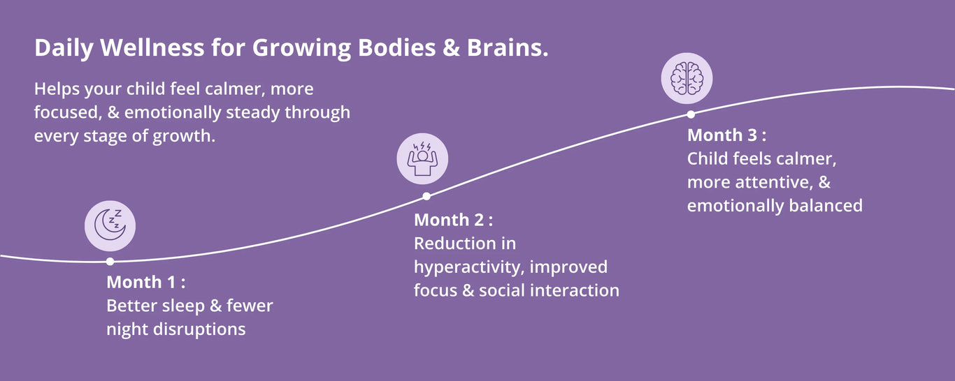 Formulated by paediatricians, this safe, non-habit forming, plant based syrup is designed to support your child’s emotional & cognitive well being gently & effectively. It helps improve sleep quality, reduce hyperactivity, enhance focus, & promotes calmer mood & better social interactions